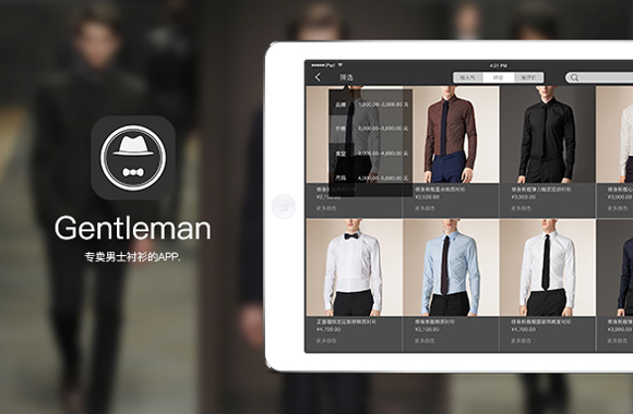 Gentleman是一款專賣男士襯衫的APP。 針對(duì)高端奢侈人群而設(shè)計(jì)的Pad端電商產(chǎn)品。運(yùn)用簡(jiǎn)潔優(yōu)雅的顏色和線條搭配,繪制男人紳士的高雅品質(zhì)。